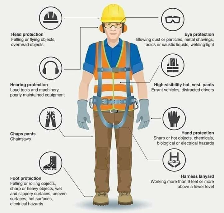 อุปกรณ์ PPE: นายจ้างต้องดูแลให้ลูกจ้างสวมใส่อุปกรณ์ป้องกันส่วนบุคคล เช่น เข็มขัดนิรภัย สายช่วยชีวิต (Lifeline) และหมวกนิรภัย ตลอดเวลาปฏิบัติงาน